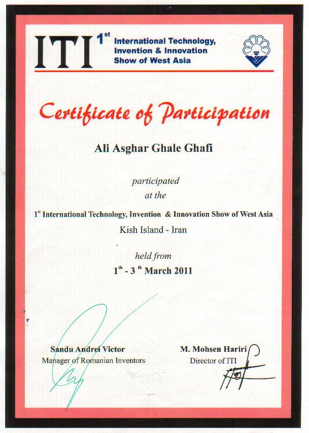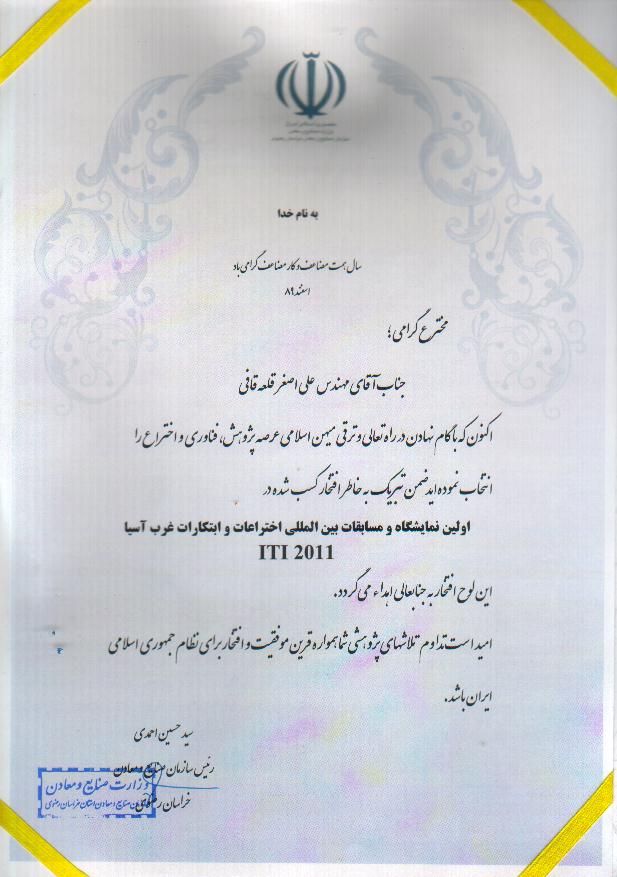 مقام اول در جشنواره مخترعین جهان در سال 1390 |