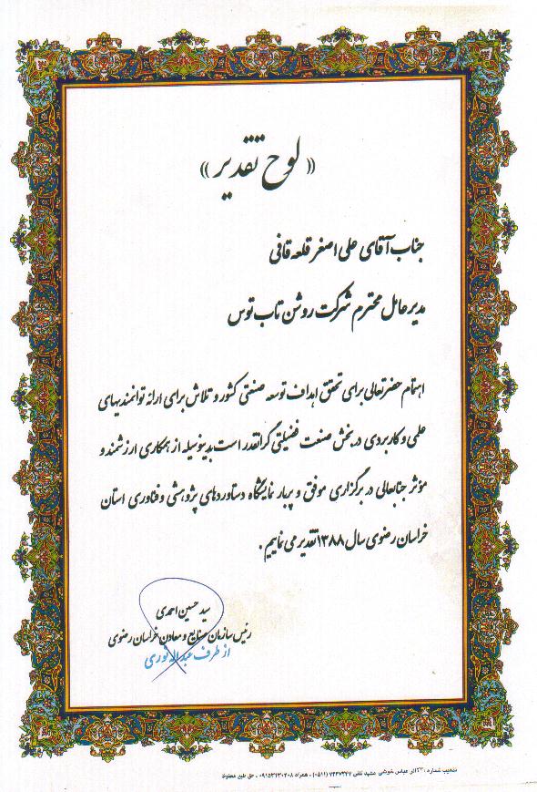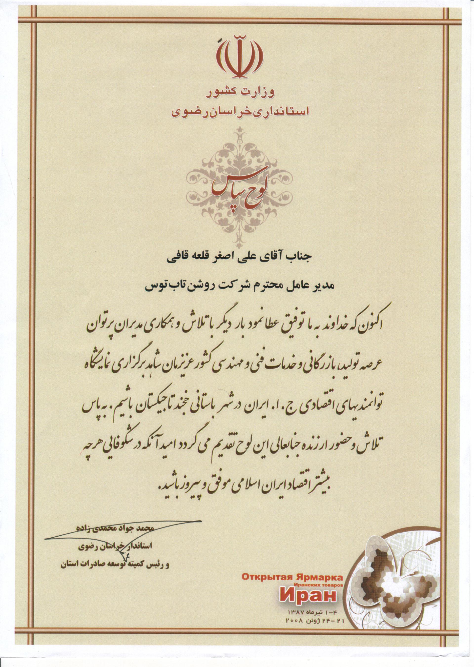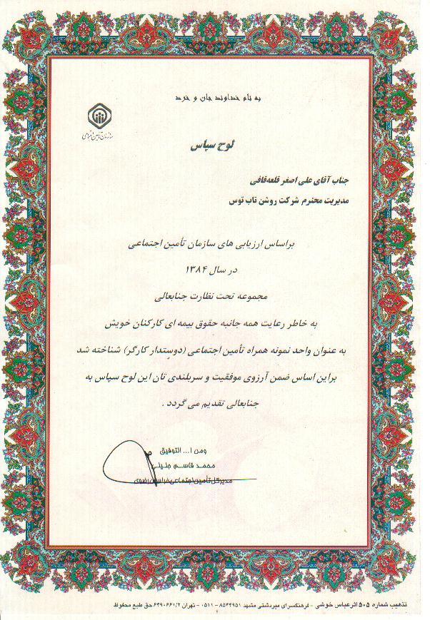 Ù„ÙˆØ Ø³Ù¾Ø§Ø³ از سازمان صنایع Ùˆ معادن |